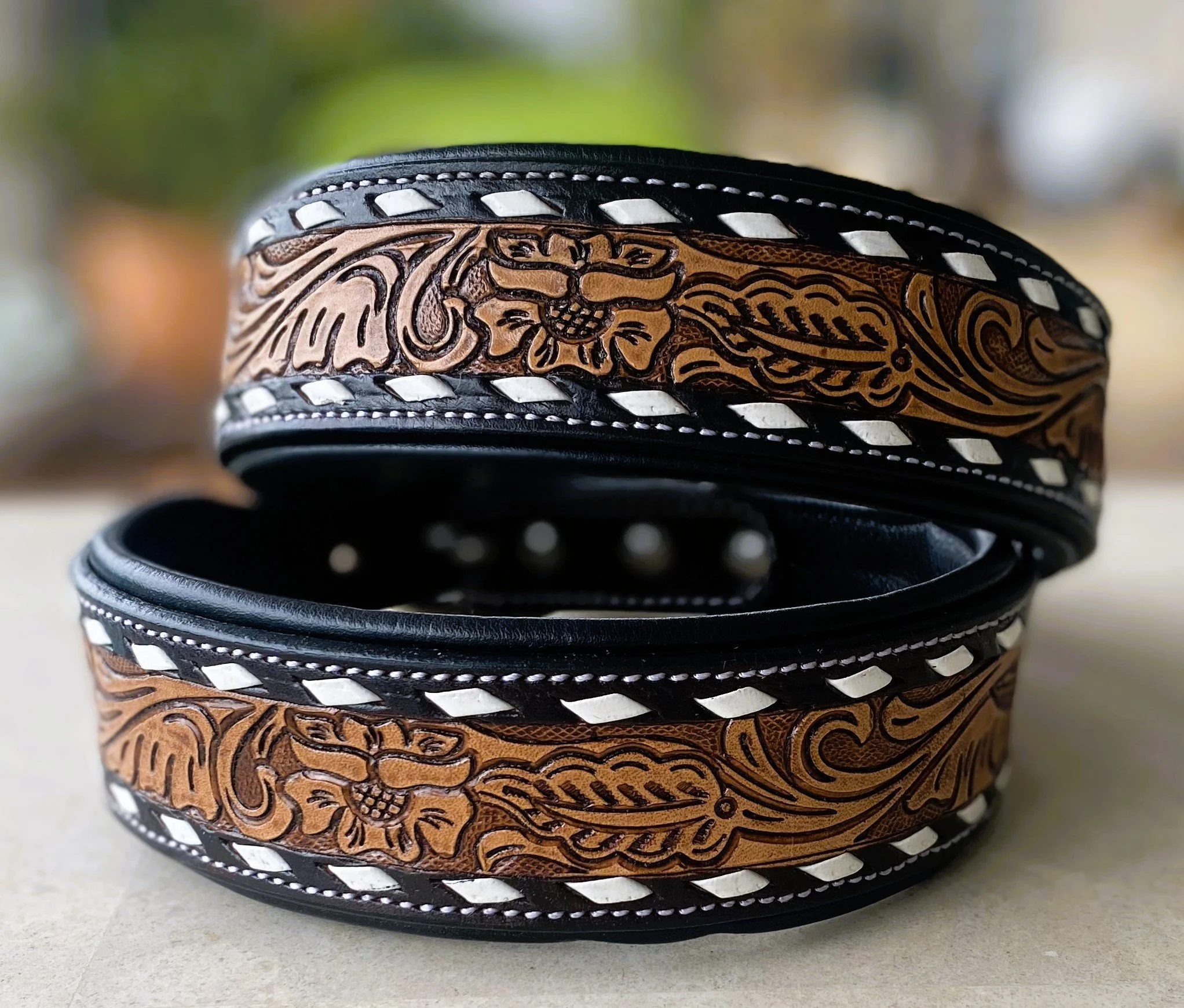 Sunday Best Artisan Luxe Everyday Dog Wear › Carlos - Luxe Artisan Dog Collar Image 1 of 4 Image 2 of 4 Image 3 of 4 Image 4 of 4 Carlos - Luxe Artisan Dog Collar $60.00 Size: Small - 26-34cm, 2cm wide Medium - 34-42cm, 2cm wide Large - 42-50cm, 2cm wide Quantity: Add To Cart Added! You Might Also Like Quick View Peach - Luxe Artisan Leather Dog Collar $60.00 Quick View Teddy's Timeless Western Collar $60.00 Quick View Winter - Luxe Artisan Dog Collar $60.00 Quick View Ruby - Luxe Artisan Dog Collar $60.00 Quick View Chilli 1.0 | Luxe Artisan Dog Collar $60.00
